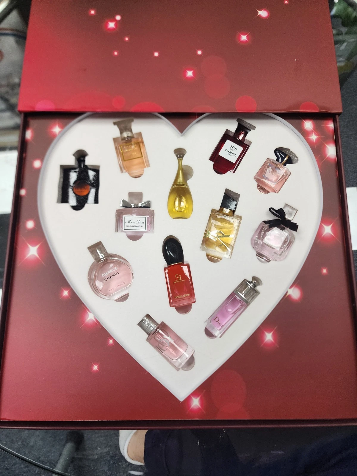 In the set with 12 different types of mini perfumes you will find the following: