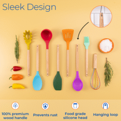- PREMIUM QUALITY MATERIALS: Crafted with high-quality silicone and durable. eco-friendly wood handles for a comfortable grip and stylish look. Our 35 pieces set is not only robust but also resistant to wear and tear. ensuring longevity and reliability. Easy to clean and perfect for non-stick cookware!